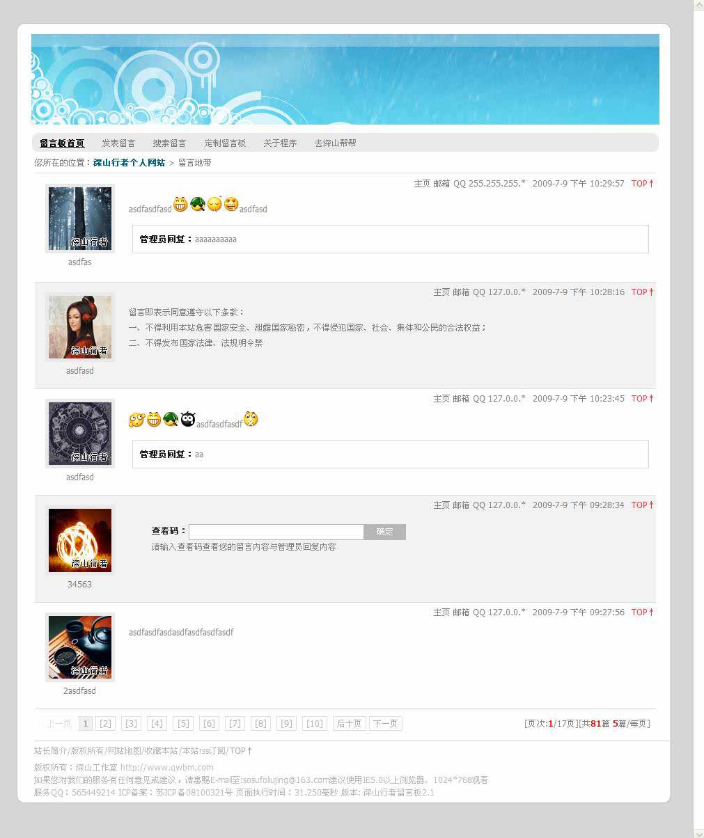 如果您是一位美工高手,為本站的留言簿制作了外殼,希望我們為您改制留言板,可以聯系我們.